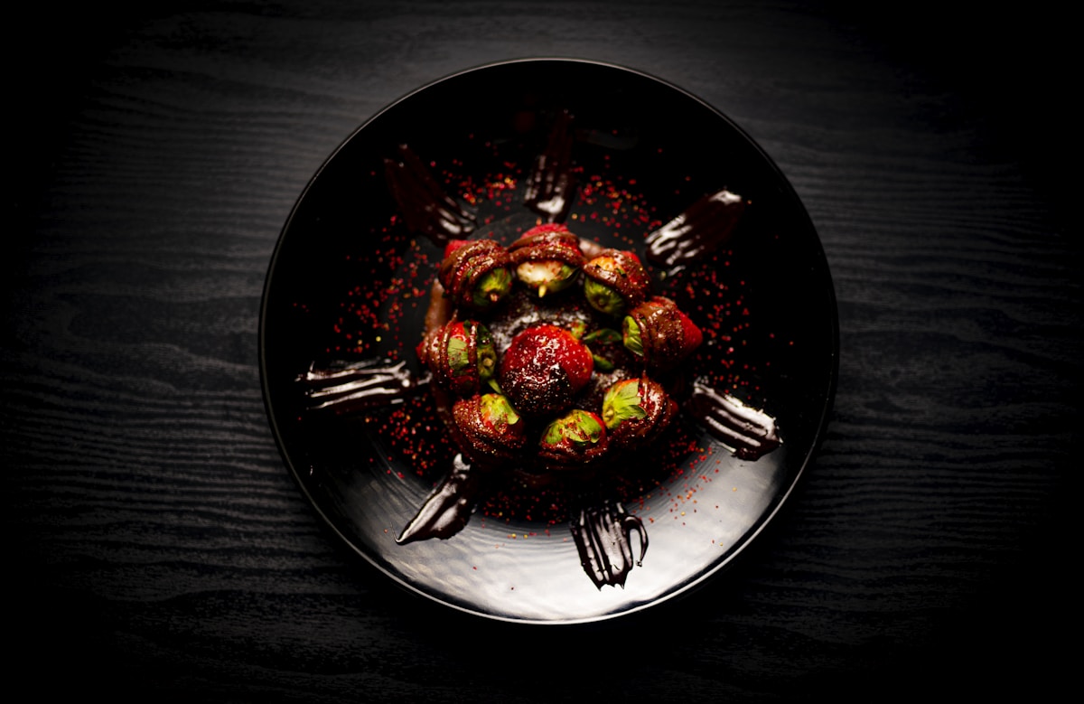 Hazelnut chocolate glazed strawberries do not have a documented cultural or ceremonial significance as a traditional dish. Rather, this is a modern confectionery preparation that reflects contemporary culinary preferences for combining luxury ingredients—dark chocolate and hazelnuts—with fresh fruit. While strawberries hold seasonal and romantic associations in various Western food cultures, the specific combination of hazelnut-chocolate glaze appears to be a product of 20th-century pastry innovation rather than traditional cultural practice. As such, the dish functions primarily as a dessert or treat within contemporary food culture rather than serving deep symbolic or identity roles within any particular tradition.